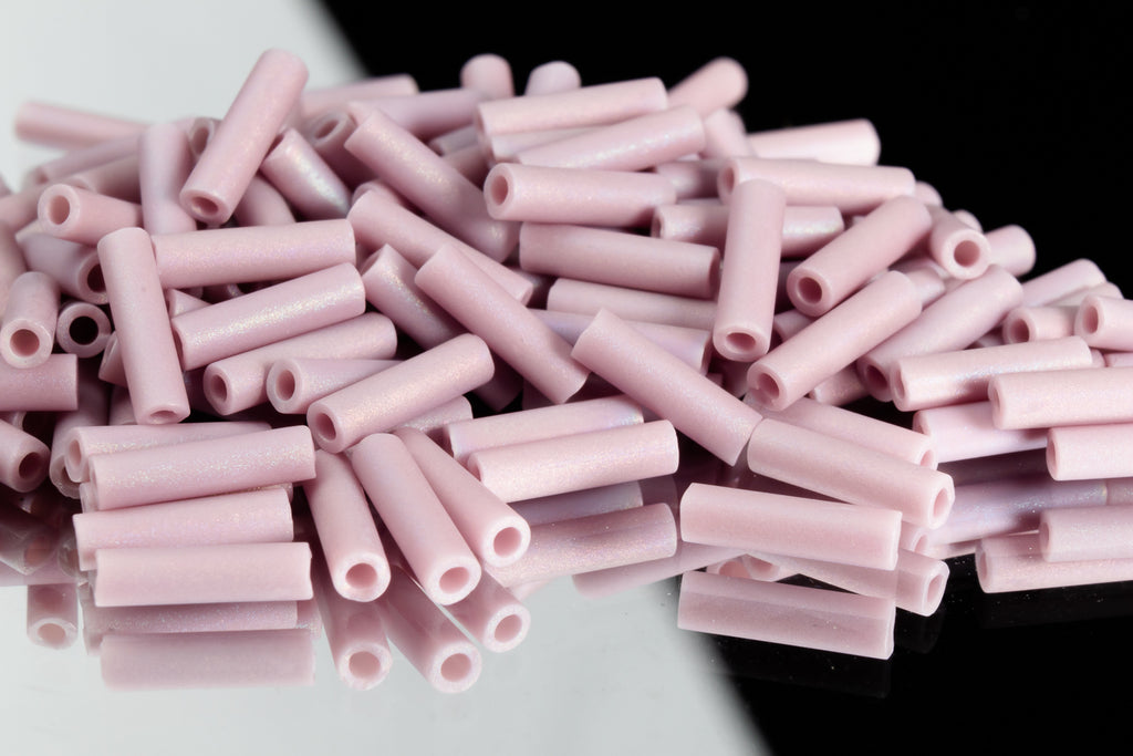 Size 1 smooth bugle in matte iridescent mauve.