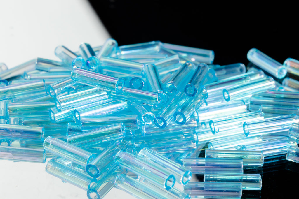 3mm Transparent Aqua AB Miyuki Smooth Bugle (125 Gm, 250 Gm)