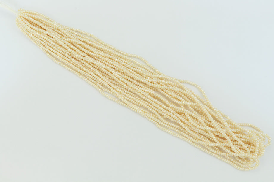 Size 11/0 Charlotte cut Ceylon cream glass seed beads.