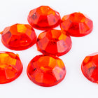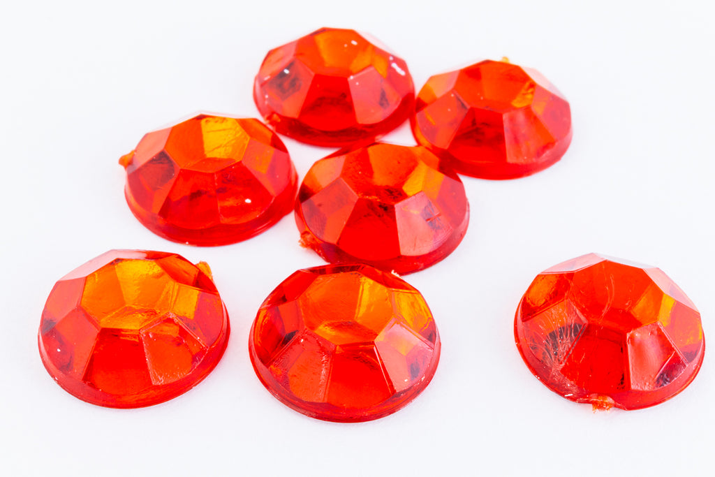 Acrylic faceted round hyacinth rhinestone with flat foiled back.