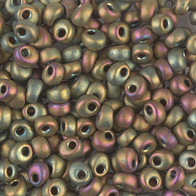 4mm x 4mm matte metallic khaki iris magatama.