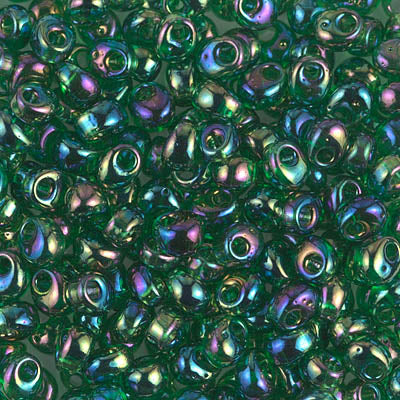 4mm x 4mm transparent iridescent green magatama.