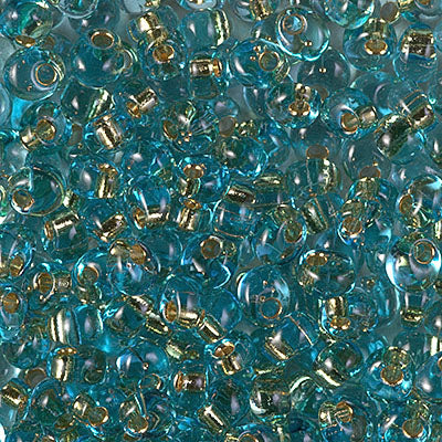 4mm 24Kt Gold Lined Light Aqua Magatama Bead (50 Gm) #953