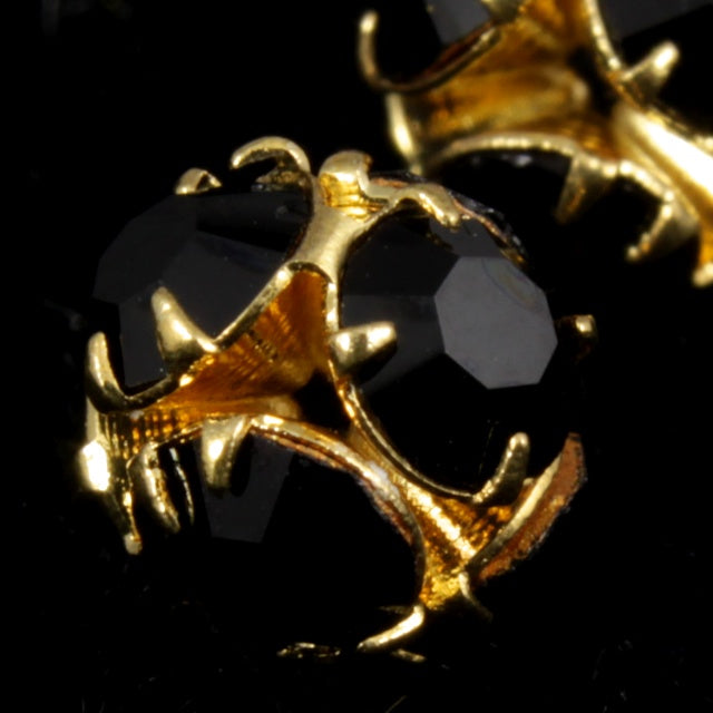 5.5mm rhinestone ball with gold tone casings and Jet black rhinestones.