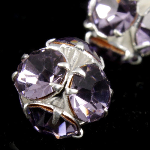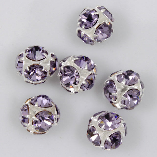 5.5mm rhinestone ball with silver tone casings and Tanzanite rhinestones.