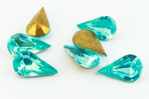 Vintage 5.5mm x 10mm Aqua Faceted Teardrop Point Back Fancy Stone #XGP024-C