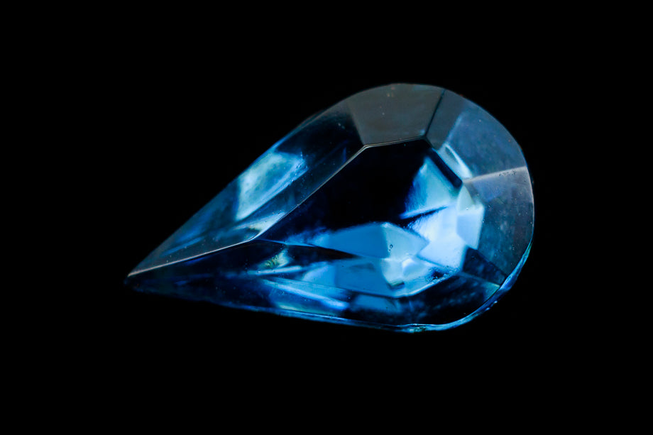 5.5mm x 10mm Montana faceted teardrop point back with gold foiling.