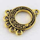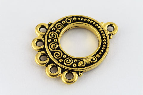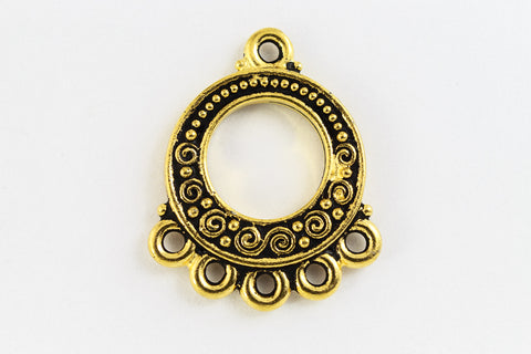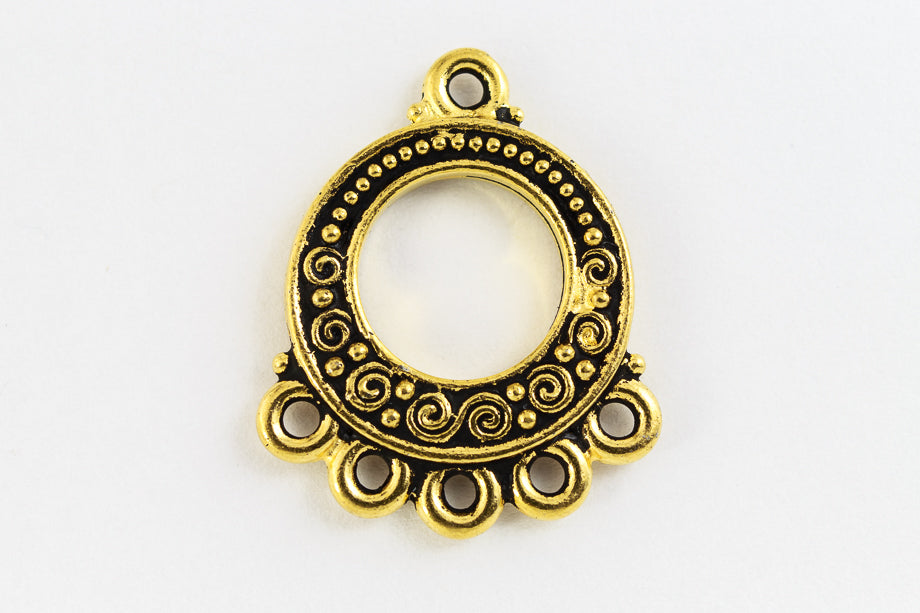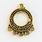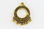 22.5mm x 18.2mm antique gold open chandelier with beaded texture and spiral details.