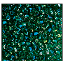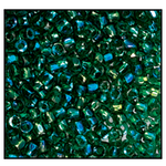 Size 9/0 (2.6mm) 3-cut glass seed bead in transparent emerald iris.