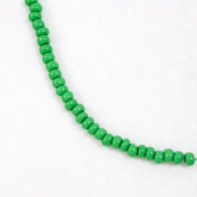 Size 3 (about 5.6mm) opaque leaf green seed beads.