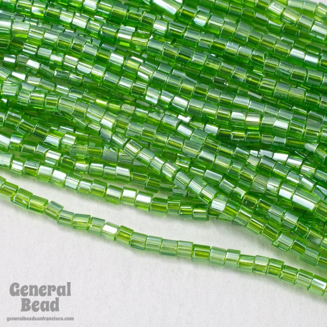 Size 11 faceted hex cut six sided seed bead in transparent luster lime.