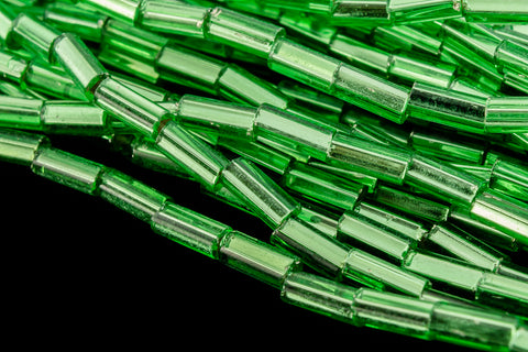 Glass bead- 4mm size 2 silver lined peridot bugle.