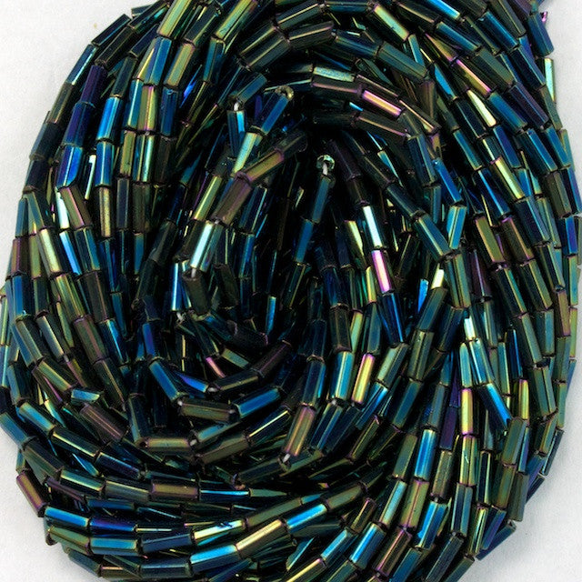 Glass bead- 4mm size 2 metallic green iris bugle.