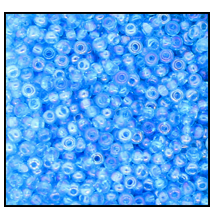 Size 13/0 Charlotte cut transparent aqua iris glass seed beads.