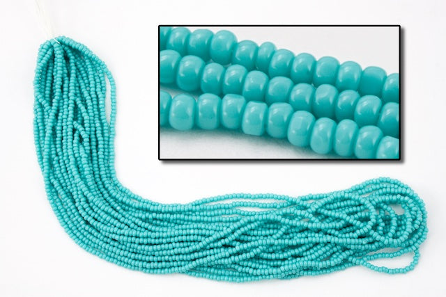 Size 11/0 Charlotte cut opaque green turquoise glass seed beads.