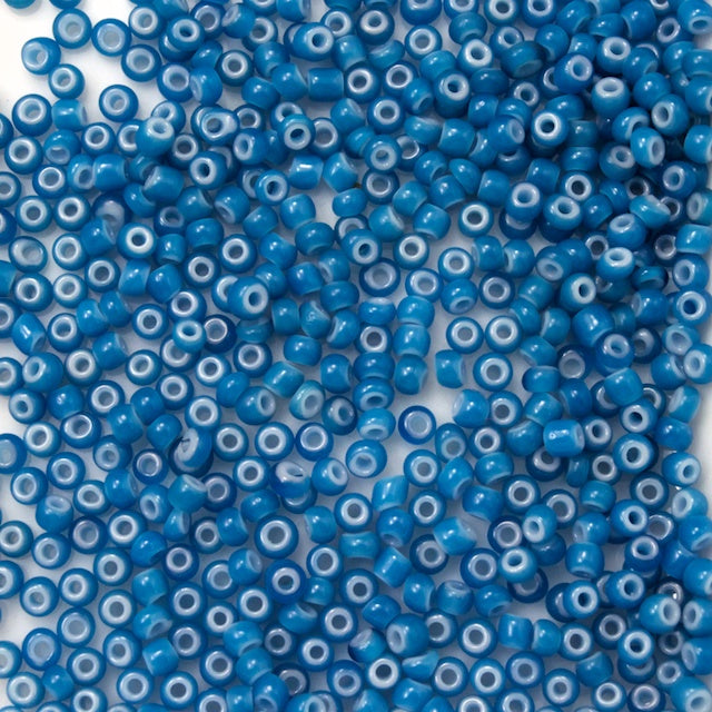 Size 6 opaque turquoise seed beads with white heart.