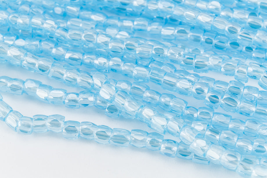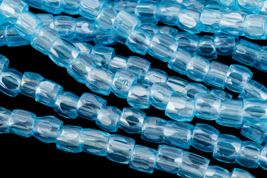 Size 12/0 (1.7mm) 3-cut glass seed bead in luster transparent sky blue.