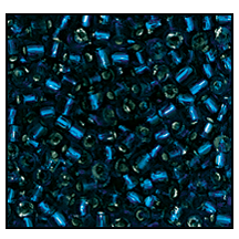 Size 12/0 (1.7mm) 3-cut glass seed bead in silver lined Montana.