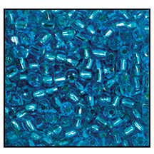Size 12/0 (1.7mm) 3-cut glass seed bead in silver lined aqua.