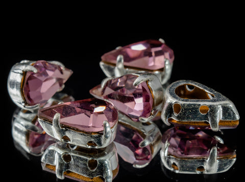Swarovski 10mm x 6mm Light Amethyst/Silver Sew-on Pear Rhinestone #RSC022