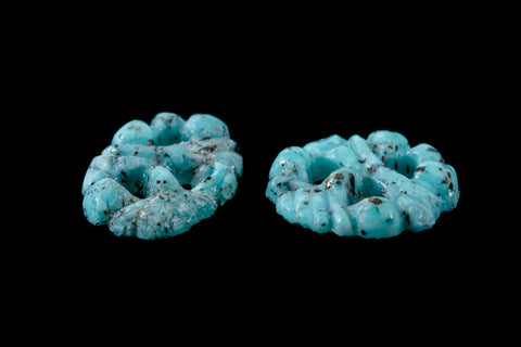 Vintage 6mm x 8mm Blue Carved Flower Oval Cabochon #XS5-D Sm