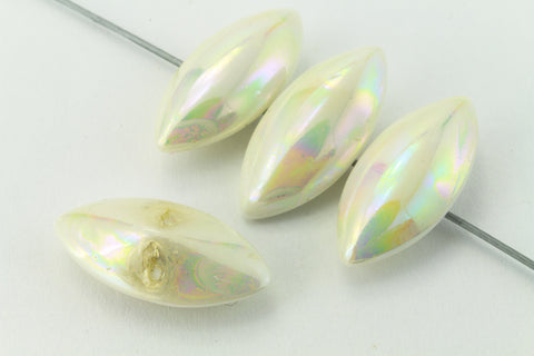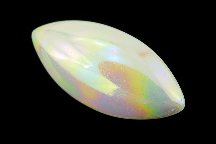 7mm x 15mm "Mother of Pearl" smooth navette point back cabochon with no foiling.
