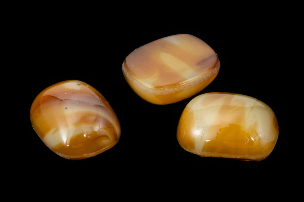 Golden caramel streaked with lighter cream tones.Made in Germany or the Czech Republic in the 1960's or earlier.Sold individually.