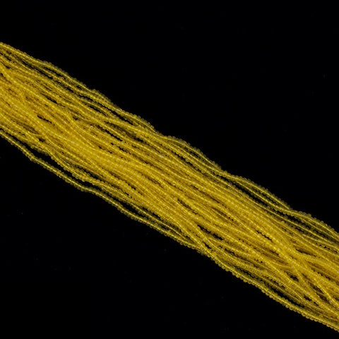 Size 13/0 (1.7mm) glass seed beads in transparent yellow.