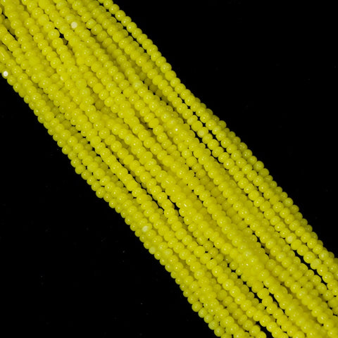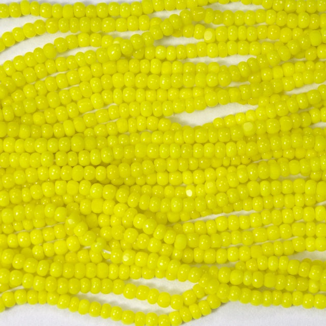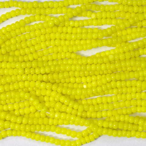 Size 11/0 Charlotte cut opaque lemon yellow glass seed beads.