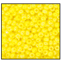 Size 13/0 Charlotte cut opaque iridescent lemon yellow glass seed beads.