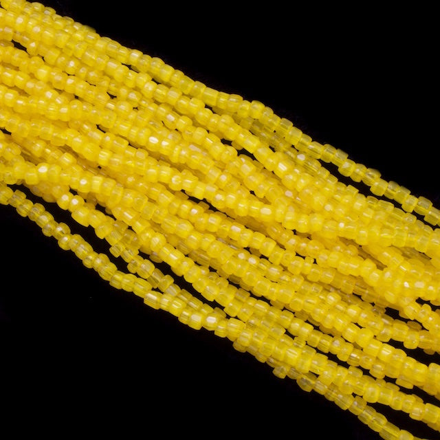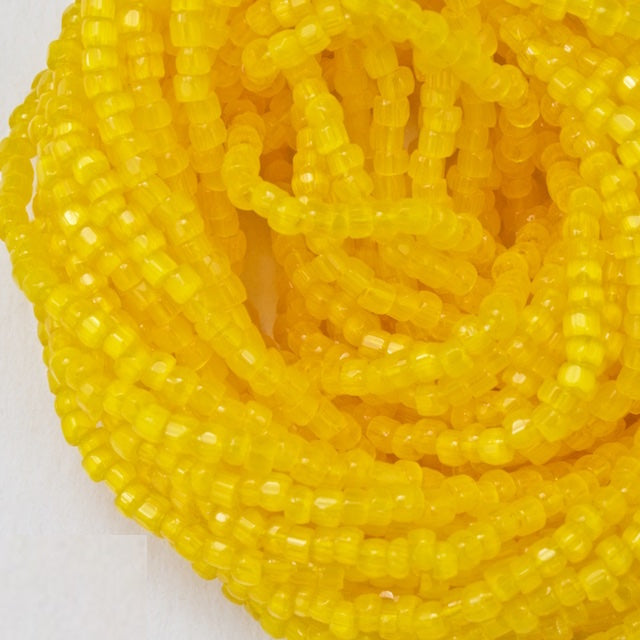 Size 12/0 (1.7mm) 3-cut glass seed bead in satin tangerine.