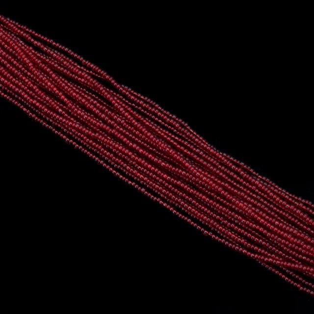 Size 11 transparent dark ruby seed bead.