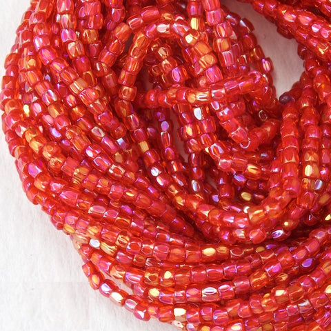 12/0 Transparent Chinese Red AB 3-Cut Czech Seed Bead (5 Gm, Hank, 10 Hanks) #CSR069