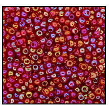 Size 11/0 Charlotte cut transparent iridescent dark ruby glass seed beads.