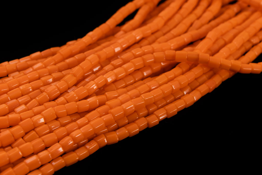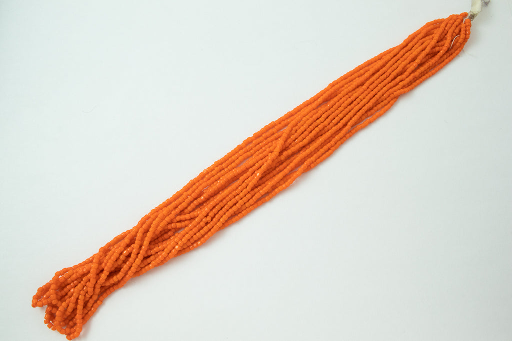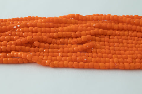 Size 9/0 (2.6mm) 3-cut glass seed bead in opaque orange.