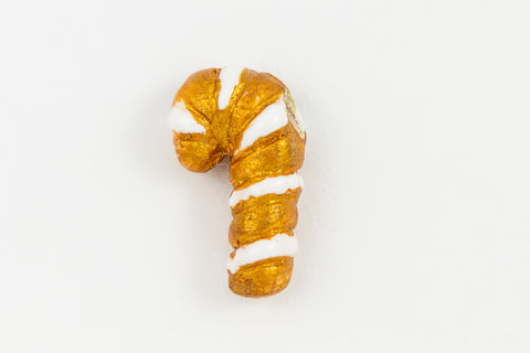 14mm Gold Ceramic Candy Cane Bead #AAU103C
