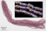 Size 12/0 (1.7mm) 3-cut glass seed bead in iridescent transparent light amethyst.