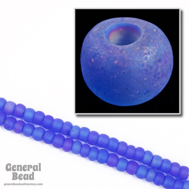 Size 5/0 matte iridescent transparent sapphire seed beads. Approximately 4mm.