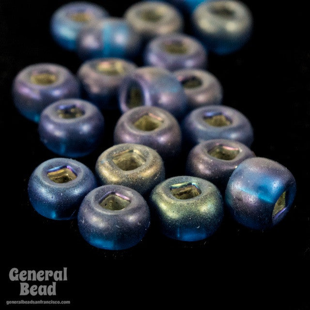 Size 6 matte silver lined Montana blue seed beads with iridescent sheen.
