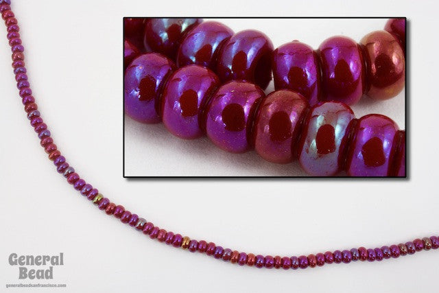 Size 6 opaque iridescent brick red seed beads.