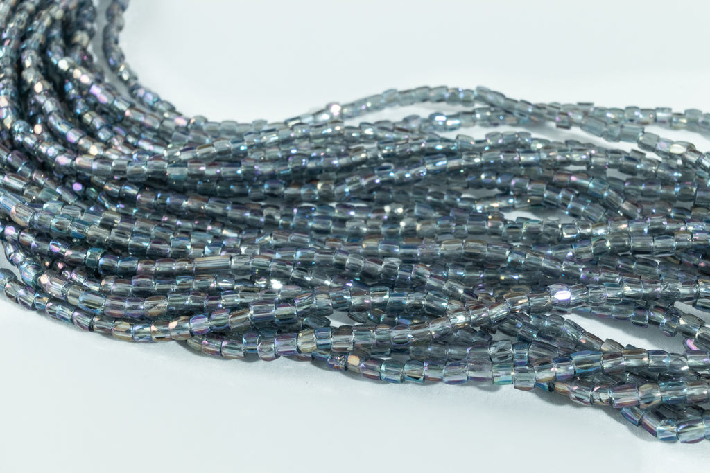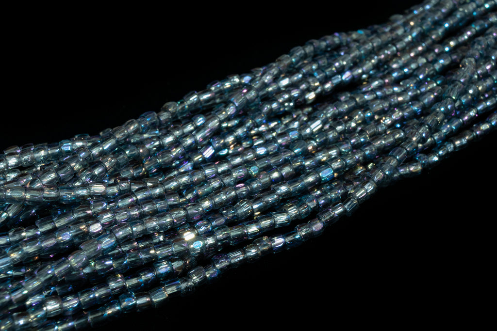 Size 9/0 (2.6mm) 3-cut glass seed bead in iridescent transparent black diamond.
