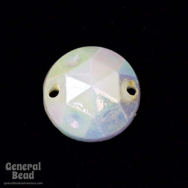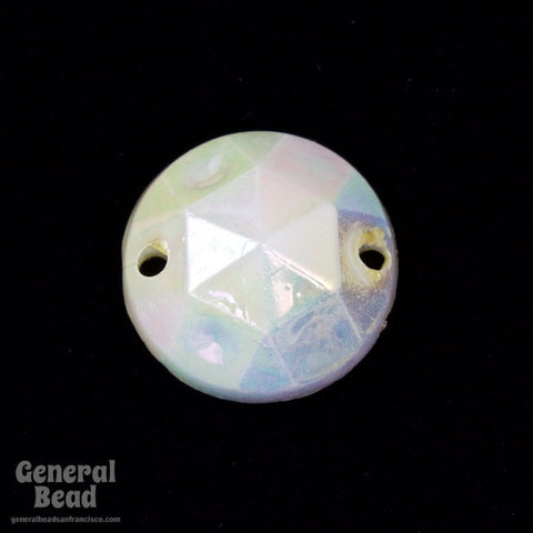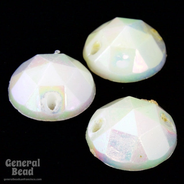 12mm round faceted iridescent white sew-on.