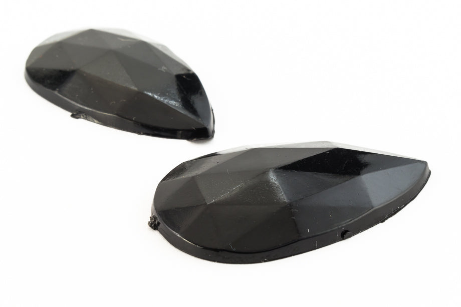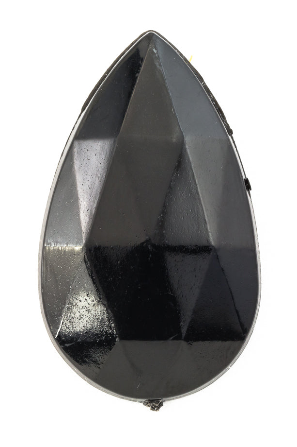 22mm x 40mm opaque black teardrop with faceted surface and flat back.
