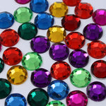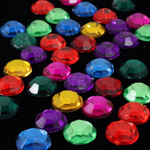 Multi-color mix of acrylic faceted round rhinestones with flat foiled back.