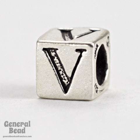 5.5mm Sterling Silver "V" Alphabet Cube #SLB022