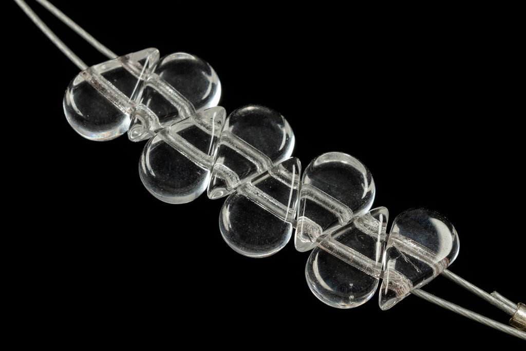 5mm x 8mm teardrop shape with 2 parallel sideways holes near the tip.