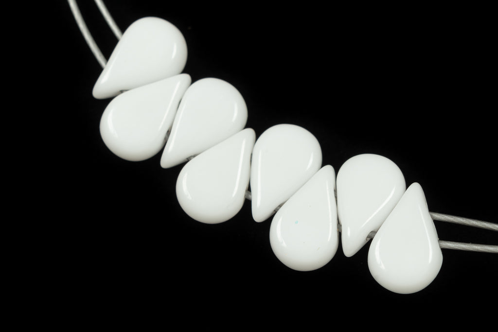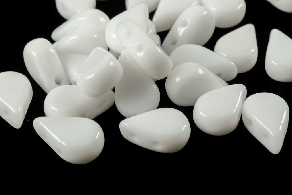 5mm x 8mm teardrop shape with 2 parallel sideways holes near the tip.