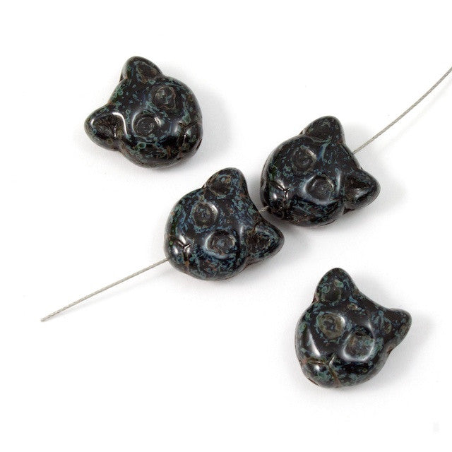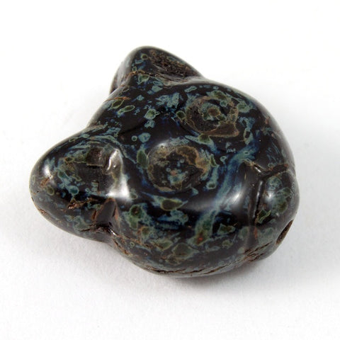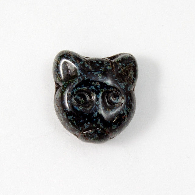 12mm two-sided cat face bead in jet black with Picasso finish.