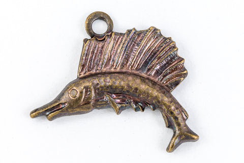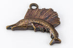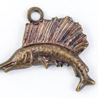 12mm antique brass detailed sailfish with loop at top.