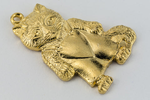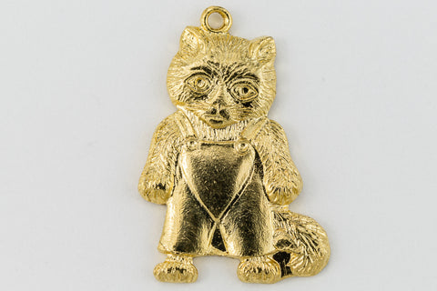 20mm gold tone fluffy kitten wearing overalls with loop at top.